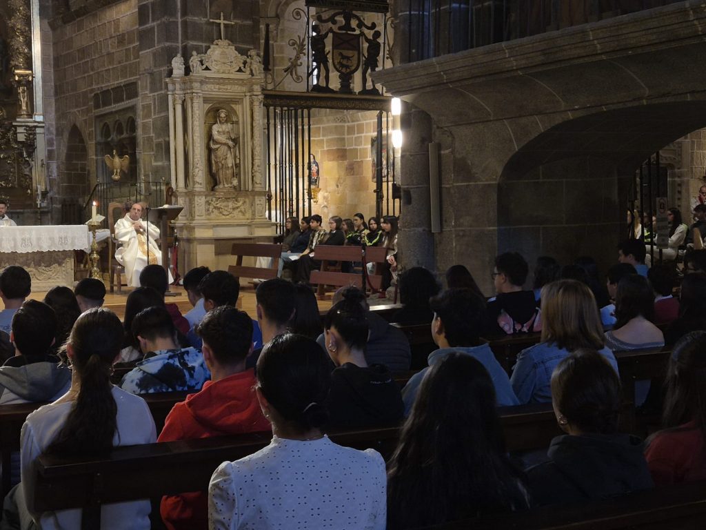 En su homilía dirigida a «los más mayores», Mons. Rico centró su reflexión en el lema escogido por los centros diocesanos para este curso: “Despierta. Cree. ¡Vive!”. A partir de las lecturas proclamadas, el obispo invitó a los jóvenes a valorar la amistad y el apoyo mutuo como “el mejor impulso para nuestro camino”, recordando que “tener un amigo es un tesoro”.