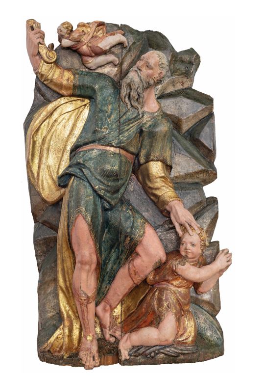 La segunda de las obras es “El sacrificio de Isaac”, proveniente de la iglesia parroquial de San Juan Bautista, de Lanzahíta. Talla en madera, de 95x50x12 cm, realizada por Pedro de Salamanca, que muestra una rica policromía realizada por Toribio González (también en el siglo XVI). Con gran movimiento plástico, expresa a la perfección el momento en el que Abrahán, a petición de Yahvé, se dispone a dar muerte a su único hijo, Isaac; un ángel impide que lleve a cabo el sacrificio, confirmándole que Yahvé había visto su fidelidad hacia Él y le llevaba la promesa de multiplicar su descendencia. Esta bella imagen podrá observarse en la muestra de Las Edades en la sede de la Catedral de Zamora.