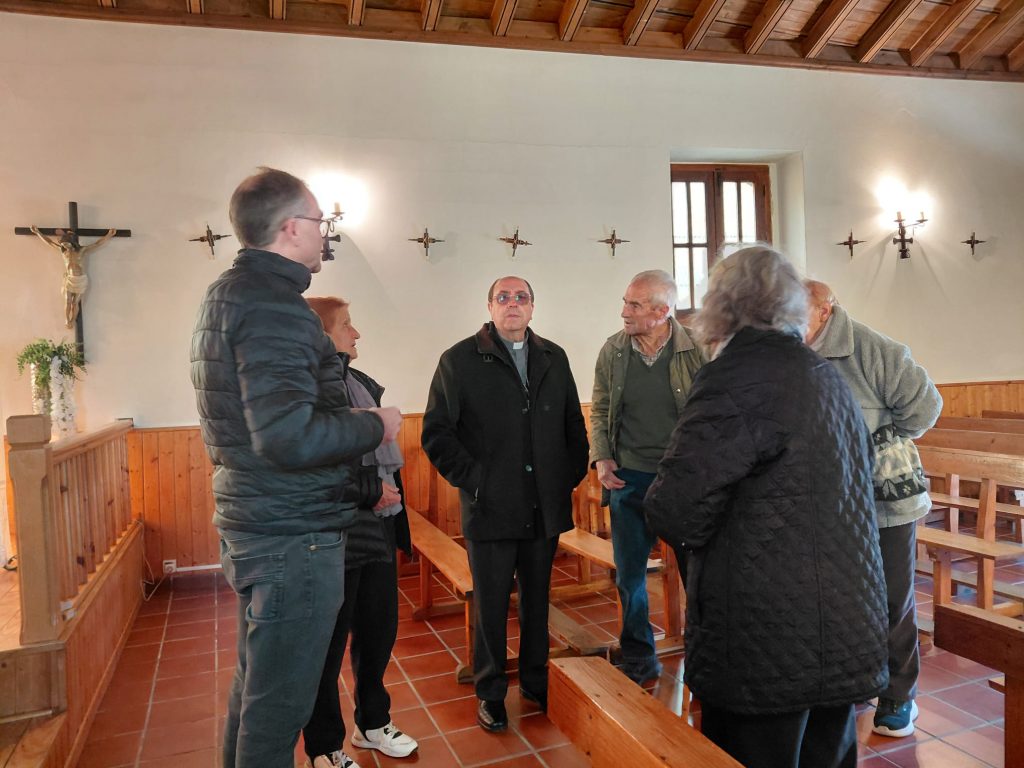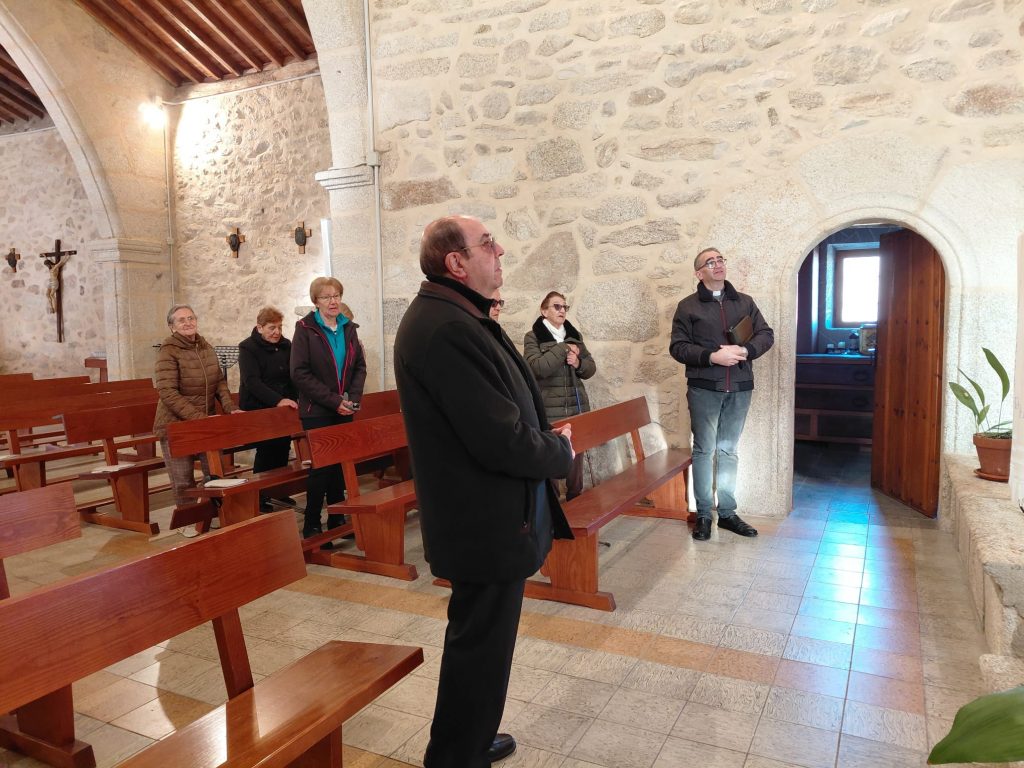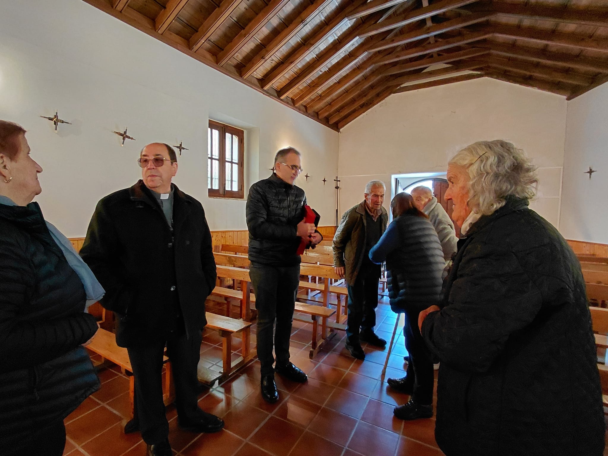 Desde allí, a Navamojada. Acompañado por el párroco, Mons. Rico visitaba la iglesia, en la cual varios fieles, de los pocos vecinos que quedan en invierno, esperaban al obispo en la puerta. Don Jesús mantenía con ellos un cordial diálogo, antes de despedirse con una oración.