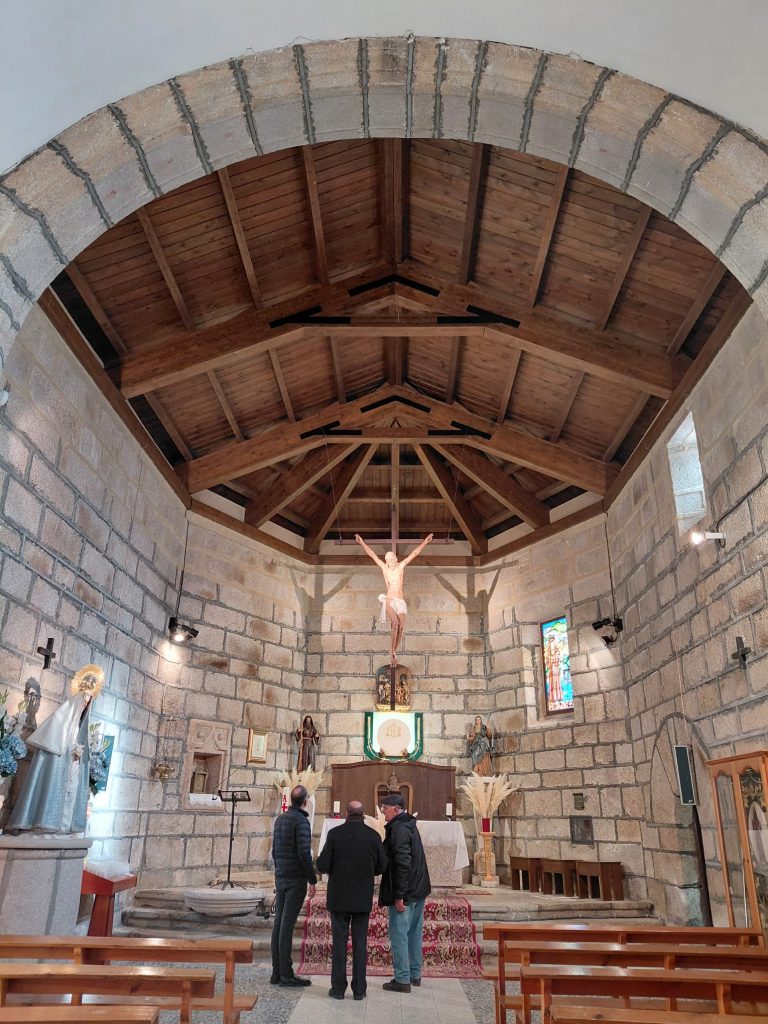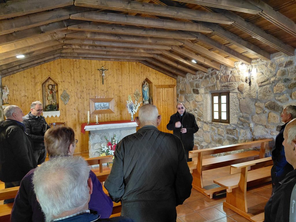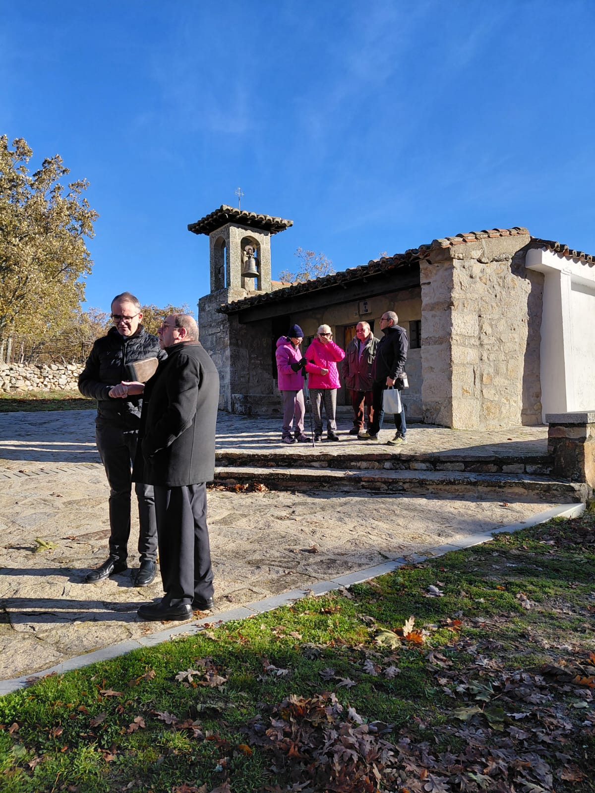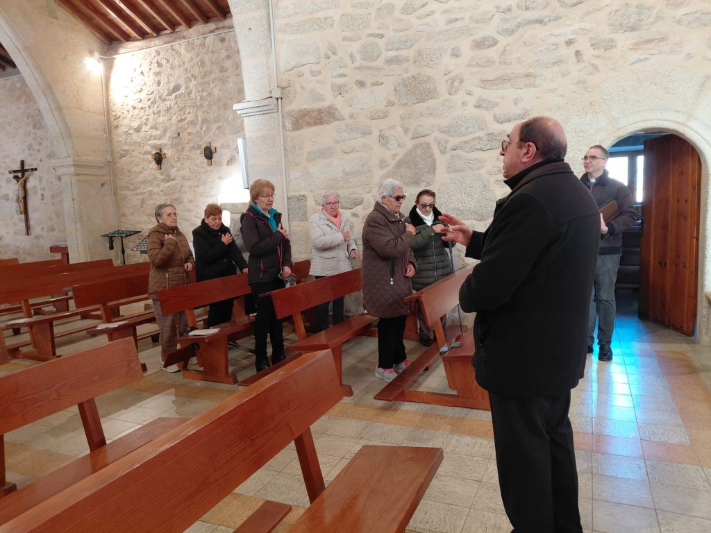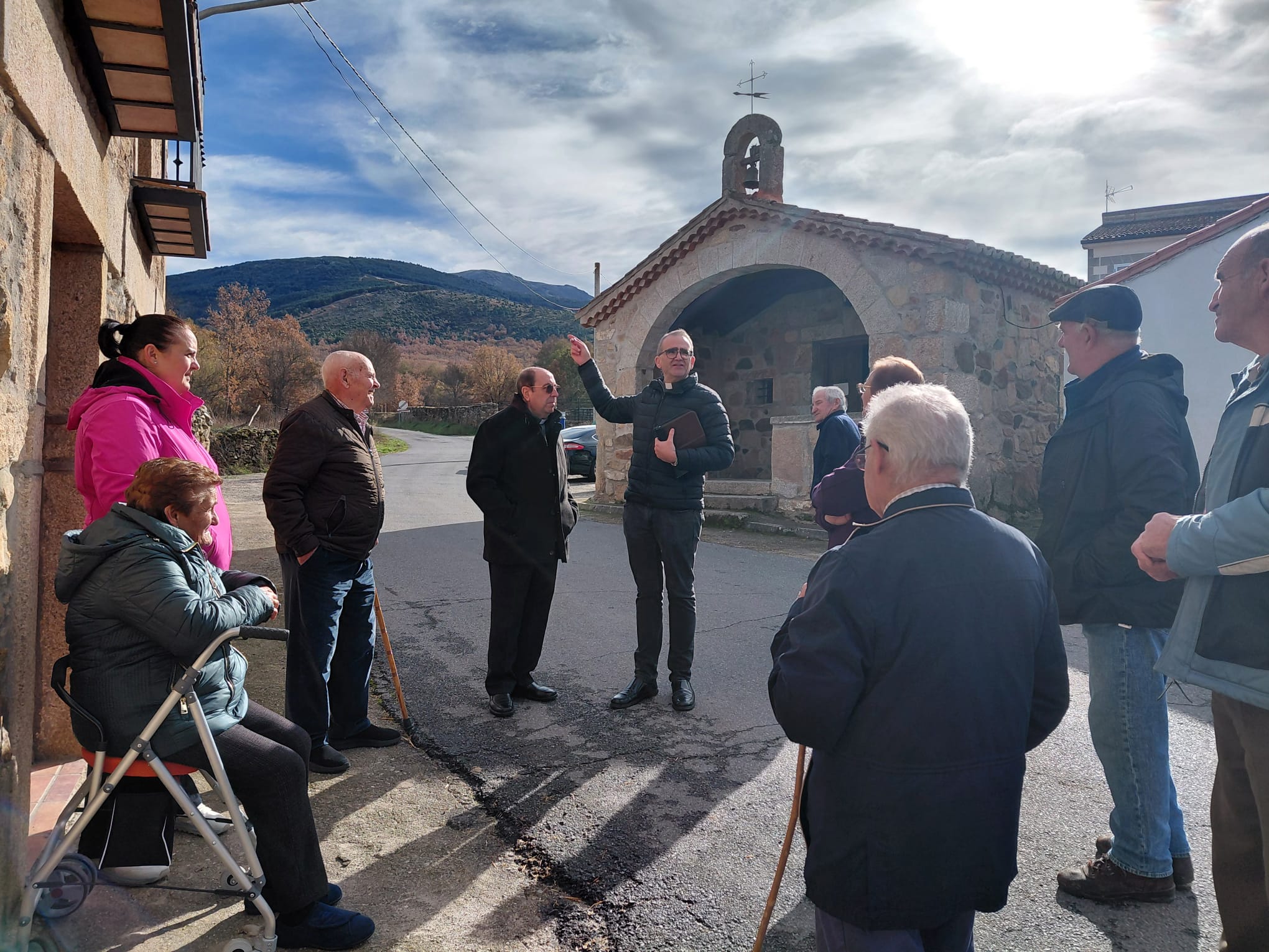 De Nava del Barco a Navalguijo. En esta pequeña localidad, Don Jesús podía visitar la capilla de San Miguel, a la entrada del pueblo, donde los vecinos le estaban ya esperando. Con ellos rezaba en el templo, y compartía después un encuentro donde le contaron cómo viven allí y cuáles son sus tradiciones y fiestas.