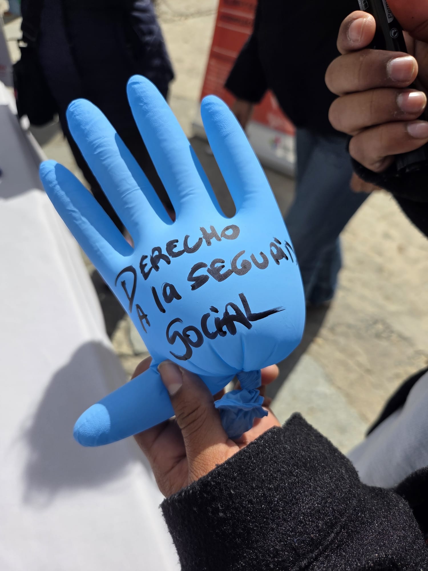 La iniciativa ha combinado la lectura de un manifiesto con un gesto simbólico: la colocación de guantes hinchados en un panel donde los participantes han podido escribir sus reivindicaciones. Mensajes como “Tenemos derechos, falta respeto”, “Seguridad social plena, sin excepciones” o “Igualdad de derechos con el resto de trabajadores” han puesto voz a las principales demandas del sector, resumidas en el lema “Tu hogar, su profesión”.