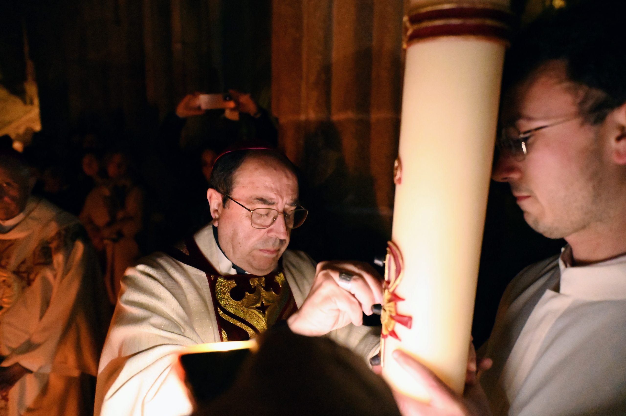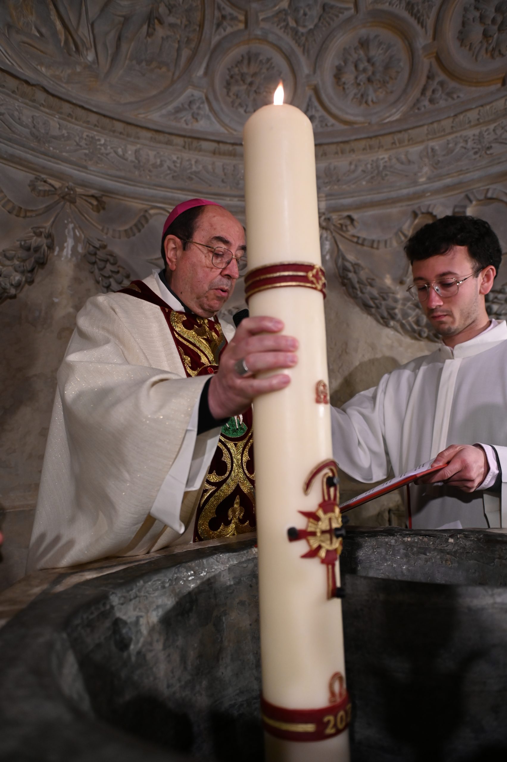Asimismo, el prelado llamó a los fieles a vencer el miedo y a convertirse en testigos del Resucitado, siguiendo el ejemplo de las mujeres que anunciaron la buena noticia. En este contexto, destacó el significado especial de los catecúmenos que, en esta noche santa, recibirían los sacramentos de la iniciación cristiana, recordando que el bautismo “hace pasar de la muerte del pecado a la vida”.