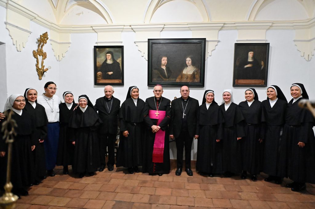 Finalmente, los obispos y el Nuncio visitaron la comunidad de religiosas agustinas que reside en el convento de Santa María de Gracia, enclavado en el palacio de Juan II, lugar donde nació la reina. La visita fue un momento de encuentro fraterno con las religiosas que hoy custodian ese espacio cargado de historia y espiritualidad.