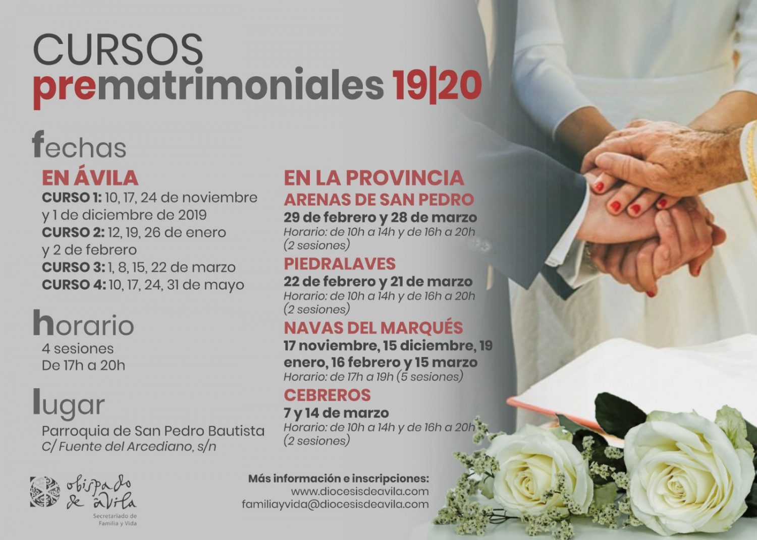 - Tramitar la solicitud de inscripción en el Cursillo Prematrimonial organizado por el Secretariado de Familia y Vida del Obispado de Ávila.